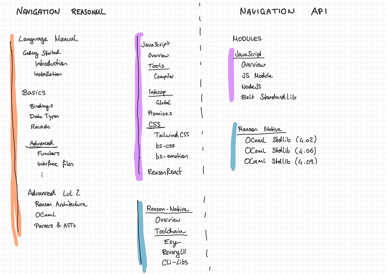 It was initiated by the Reason Association and funded by Ahrefs / the Tezos Foundation to finally tackle the most challenging issue that many companies, community members, and newcomers have faced from the beginning of the Reason project: The lack of guidance and the confusing documentation architecture of the Reason ecosystem.